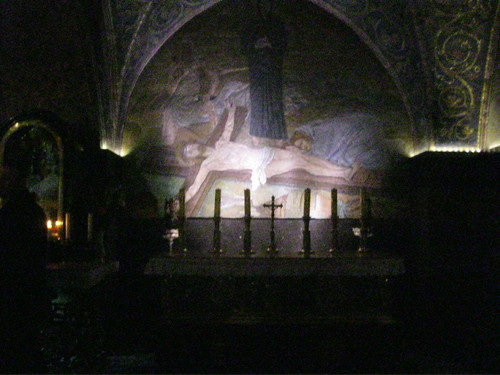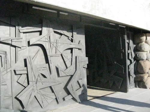 Entrada no Memorial das Crianças, onde por uma passadeira em ambiente soturno e triste como a noite uma voz vai evocando o nome das crianças vítimas do ódio nazi.