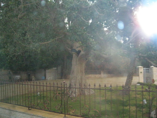Com o estômago farto e a vista regalada, deixamos este assombroso recanto de chão estéril e mar densamente salgado para continuar a nossa jornada em direcção a Jerusalém que dista do Mar Morto cerca de 25km, mas antes passando por Jericó, onde para nosso azar, mas sorte para a região, a chuva forte que caiu, já nós entrados na cidade, impediu que descêssemos do autocarro. Apenas lá recolhi a foto de um sicômoro com história visto protegido por gradeamento. " Jesus entrou em Jericó e atravessou a cidade. Havia lá um homem rico chamado Zaqueu, chefe de cobradores de impostos. Queria ver quem era Jesus, mas era muito baixo não conseguia, por causa da multidão. Correu então adiante do povo, subiu a uma figueira brava (sicômoro) e ficou à espera que Jesus por ali passasse para ver" (Lc 19: 1-5). Zaqueu ou seja São Bartolomeu.